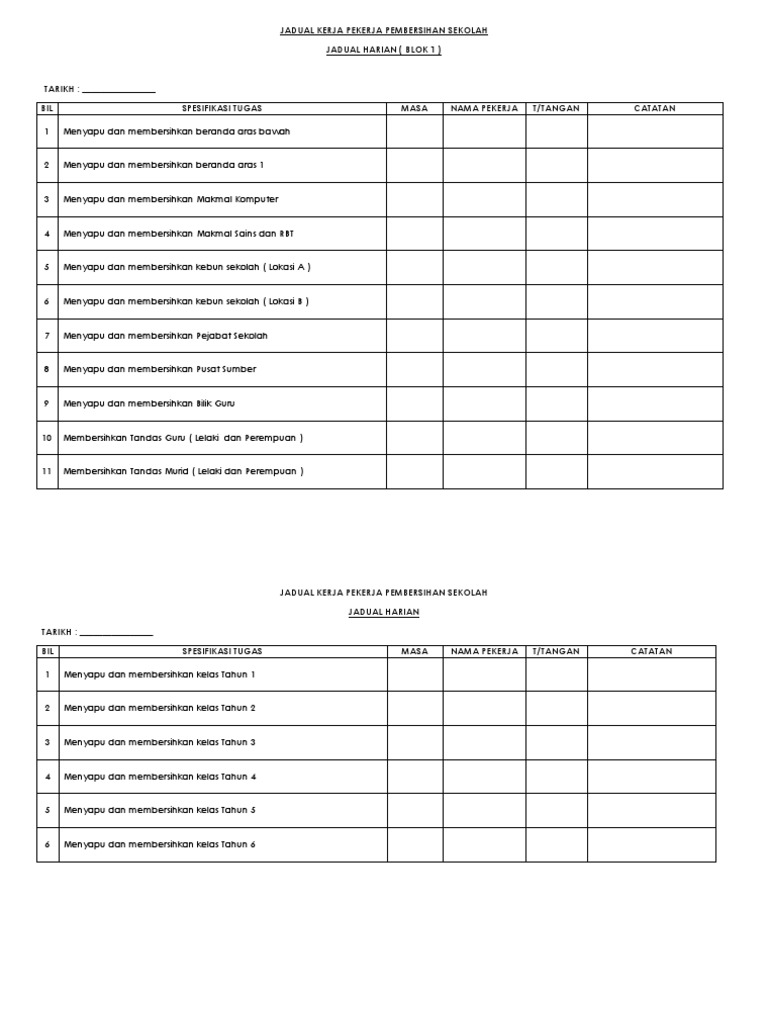 Medan selera dan tandas awam. Inilah contoh jadual tugas pembersihan dan hal lain yang berhubungan erat dengan contoh jadual tugas pembersihan serta aspek K3 secara umum di Indonesia. Dec 16 2021 analisis data kualitatif.